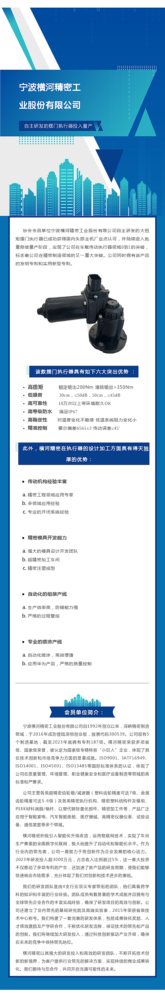 橫河精密自主研發(fā)的擺門執(zhí)行器投入量產(chǎn)